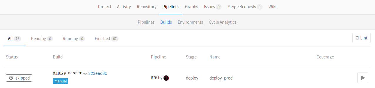 deploy_prod job will only be triggered if and when we click that play button.
